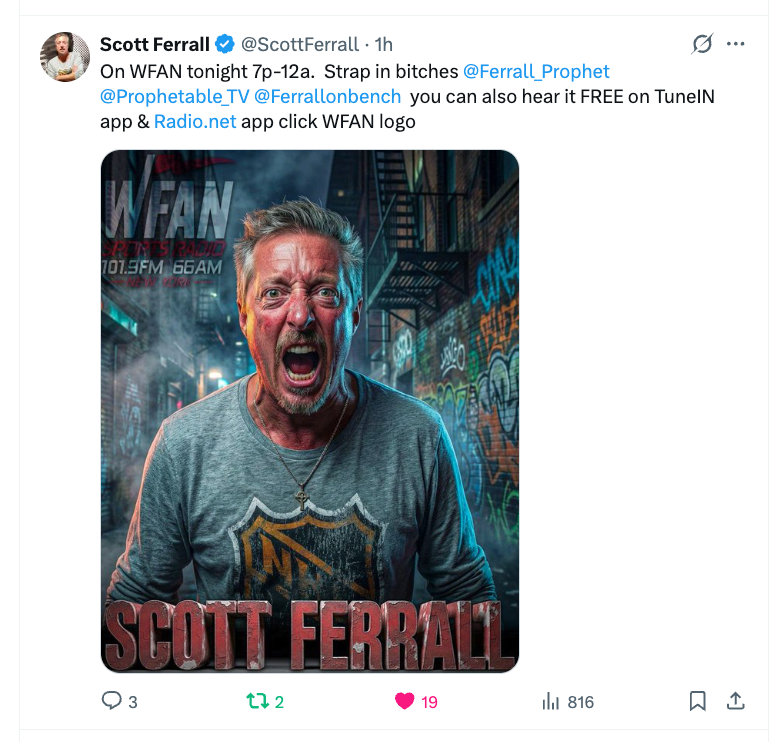 Scott is live on WFAN tonight from 7p-12am!